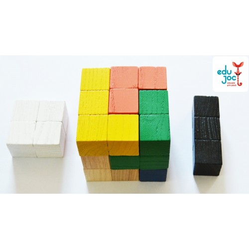 Cubul logic - cele 33 de cuburi formeaza 9 piese puzzle, imbinandu-le putem crea obiecte simple, constructii neobisnuite, sau chiar un cub utilizând 7 piese puzzle!
