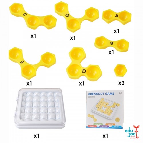 - puteti sa mutati toate piesele jocului cu exceptia celei mici galbene (fara litere). Aceasta piesa trebuie sa o considerati parte din tabla de joc pe parcursul acelui nivel.