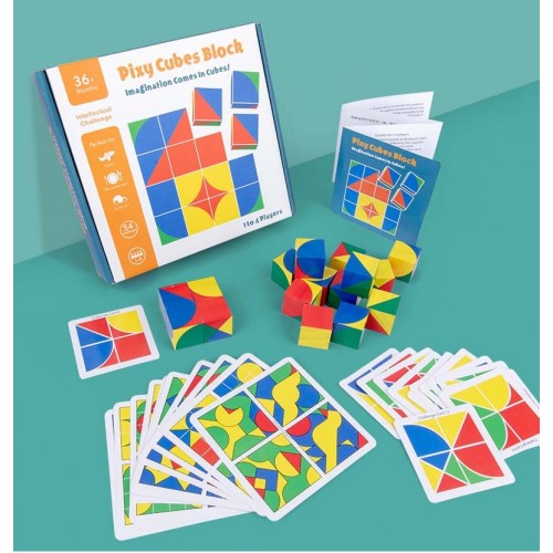 Testați memoria sau ocupați-va timpul facand modele unice.Jocul Pixy este o provocare distractiva pentru copiii de a practica raționamentul spațial, dexteritatea vizuala, identificarea modelului si coordonarea ochilor mâinii.Jucatorii încearca sa recreeze cartea cu modelul de cuburi. Activitați suplimentare pentru practicarea tiparelor, sortarea si memoria.Dezvolta agilitate, percepție vizuala, memorie si creativitate.O activitate provocatoare si versatila.Jocul contine:16 Cuburi din lemn, 10 carduri mari cu model fata-verso13 carduri mici cu modele fata-versi,Cutie din carton pentru depozitare.