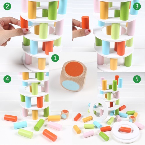 Exista multiple posibilitati de construire a turnului fara ca acesta sa cada. Acest joc va dezvolta capacitatea de concentrare, fina motricitate, spiritul de observatie.