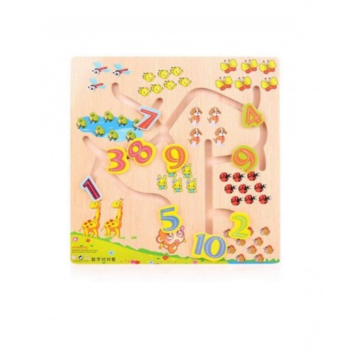 Puzzle din lemn Labirint cu cifre si corespondenta lor grafica cu animalute.