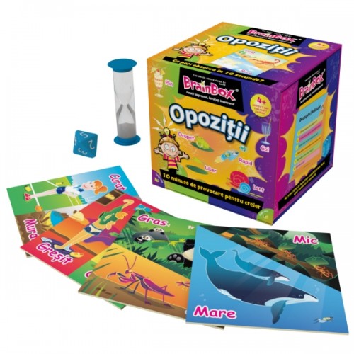 Copiii cu varsta peste 4 ani pot afla despre antonime, antiteze si lucruri opuse cu acest BrainBox frumos ilustrat. Conceput pentru parinti sa se joace cu copiii lor, acest joc minunat va imbunatati abilitatile de observare si memorie. Indiferent daca jucatorii sunt mai in varsta sau tineri, mari sau mici, BrainBox Opozitii va oferi distractie pentru toata familia.