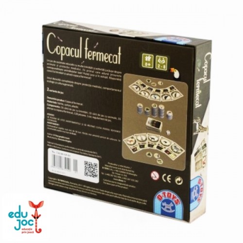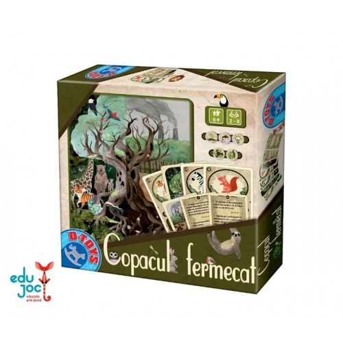 Jocul contine: 55 carti de joc cu intrebari, 32 carți de joc cu animale, 16 planse cu copacul fermecat, 120 jetoane , un zar, regulament de joc.