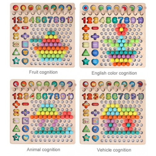 Un joc educativ complex, multifunctional, care ii ajuta pe cei mici sa isi dezvolte capacitati cognitive, de dexteritate, motricitate fina, vizuale, de coordonare mana-ochi, de atentie si de indemanare.