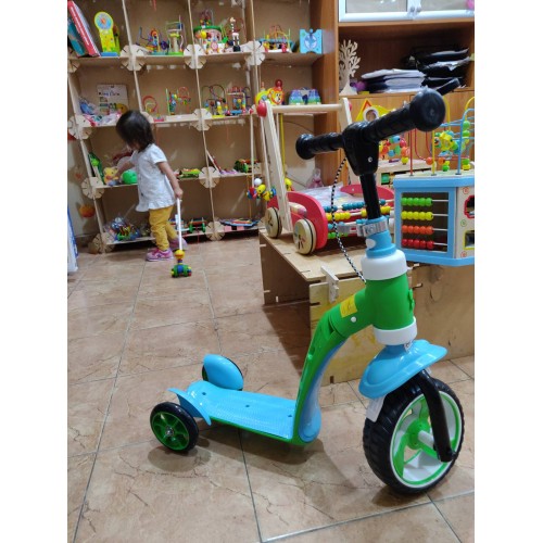 Tricicleta are 60x25 cm la baza, 31cm inaltimea la scaunel