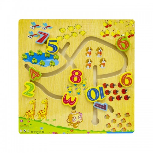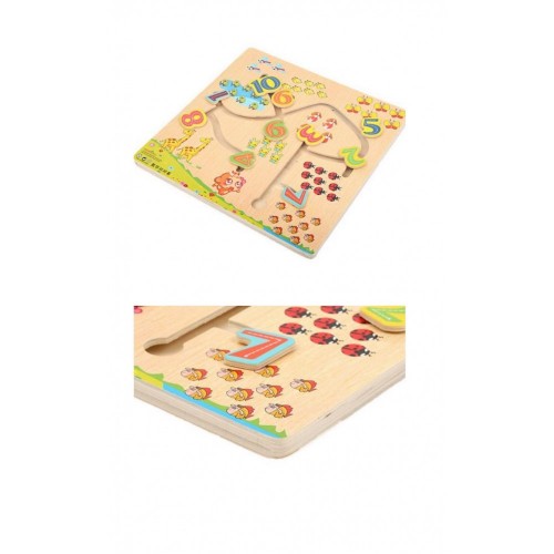 Puzzle din lemn Labirint  cu cifre si corespondenta lor grafica cu animalute.