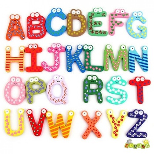 Litere din lemn magnetice.