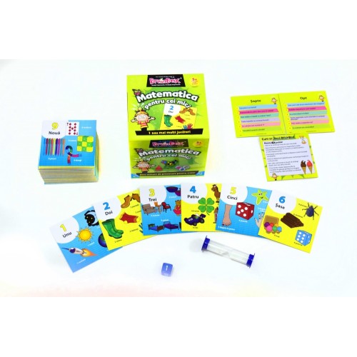 Special conceput pentru ca părinții și profesorii să se poată juca cu copiii mai mici, acest Brainbox va îmbunătății spiritul de observație și capacitatea de memorare și vă va introduce primele noțiuni de matematică. Fiecare cartonaș prezintă câte o noțiune cheie din domeniul matematicii ce poate fi însușită ușor de către cei mici. De exemplu numerele până la 20, formele geometrice, timpul, banii și graficele simple sunt doar câteva dintre temele celor 55 de cartonașe. Conceput de către un învățător cu experiență, acest joc poate fi jucat atât individual cât și în grupuri iar distracția este garantată!