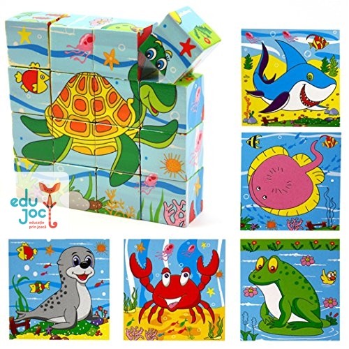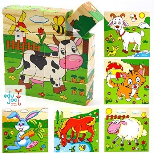 Cuburile puzzle sunt din lemn avand imagini imprimate pe toate laturile, formandu-se astfel diferite imagini in stil puzzle.