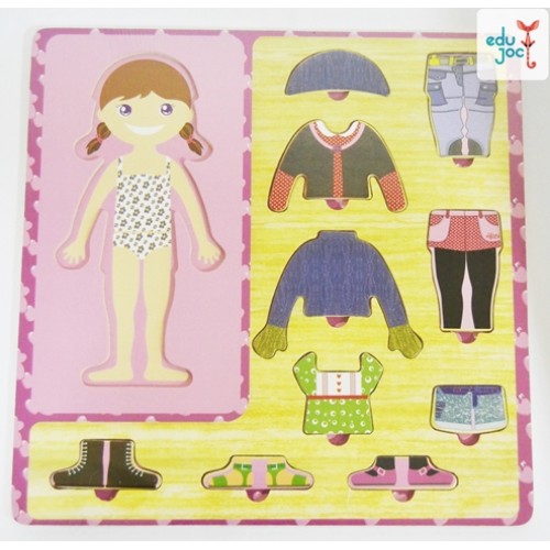 Contine tabla de puzzle, 3 combinatii de bluza, pantaloni, incaltaminte, o caciula.