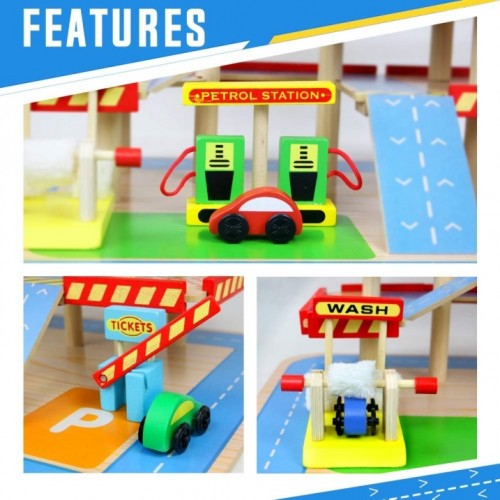 Parcare din lemn cu accesorii , o jucarie educativa cu mutiple functii.