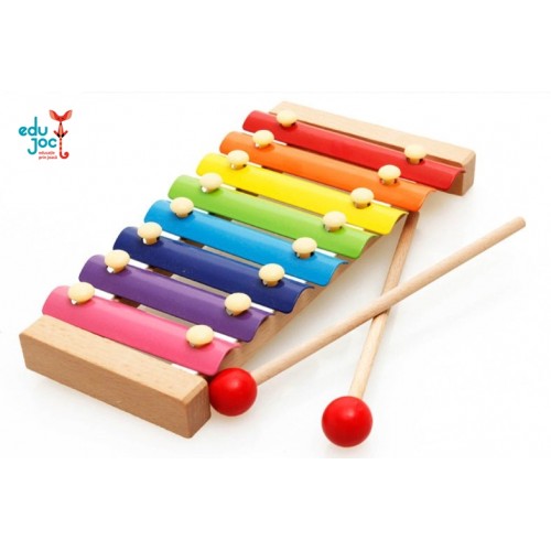 Xilofon pentru copii, din lemn si metal, frumos colorat.